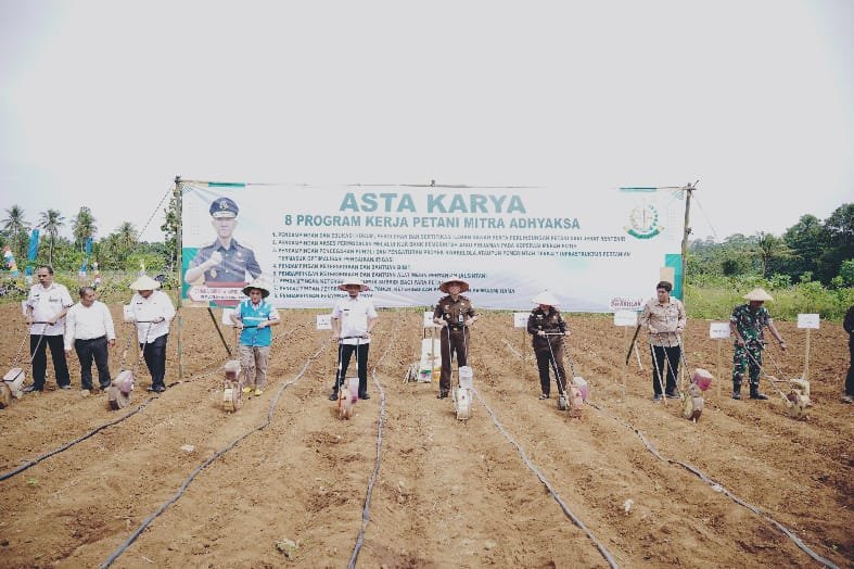 MataNasional.co.id, Pringsewu – Mendukung program ketahanan pangan nasional dan meningkatkan kesejahteraan petani, Kejati Lampung bersama Pemkab Pringsewu serta Petani Mitra Adhyaksa (PMA) Pilot Project, melakukan Penanaman Jagung di Musim Kemarau dan UMKM Mitra Adhyaksa (UMA) di Pekon Enggalrejo, Kecamatan Adiluwih, Rabu (13/08/2025).