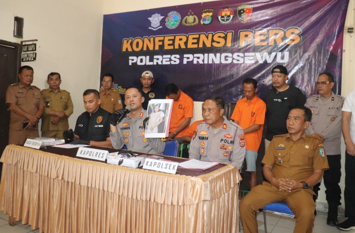 Kapolres Pringsewu AKBP M. Yunnus Saputra menjelaskan bahwa ketiga terduga pelaku yang diamankan adalah Dimas Anjahnudin alias Nasip (37), warga Pekon Wonosari, Pringsewu, Wawan Setiawan alias Kitung (38), warga Desa Kuripan, Pesawaran, serta Ariesman (33), warga Kota Agung, Pesawaran, yang diduga berperan sebagai penadah barang hasil kejahatan.