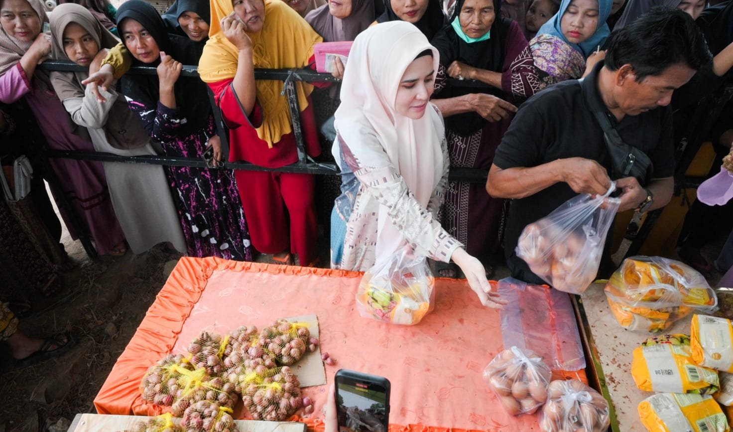 Pesawaran— Kunjungan Silaturahmi Ramadan 1447 H/2026 M Pemerintah Kabupaten Pesawaran di Kecamatan Tegineneng tak hanya menjadi ajang mempererat ukhuwah islamiyah, tetapi juga momentum peninjauan pasar murah dan bazar Ramadan untuk mendukung ekonomi warga. Kegiatan yang dipusatkan di Masjid Nurul Falah, Desa Gerning, Selasa (3/3/2026), dihadiri langsung Bupati Pesawaran Hj. Nanda Indira B.